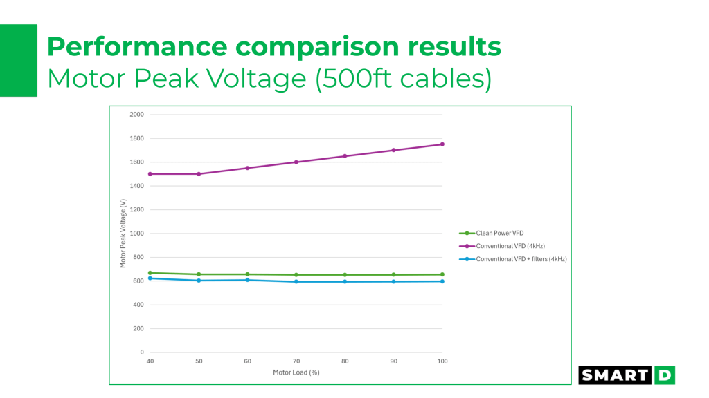 - Conçu pour tolérer les moteurs existants et les longues longueurs de câble